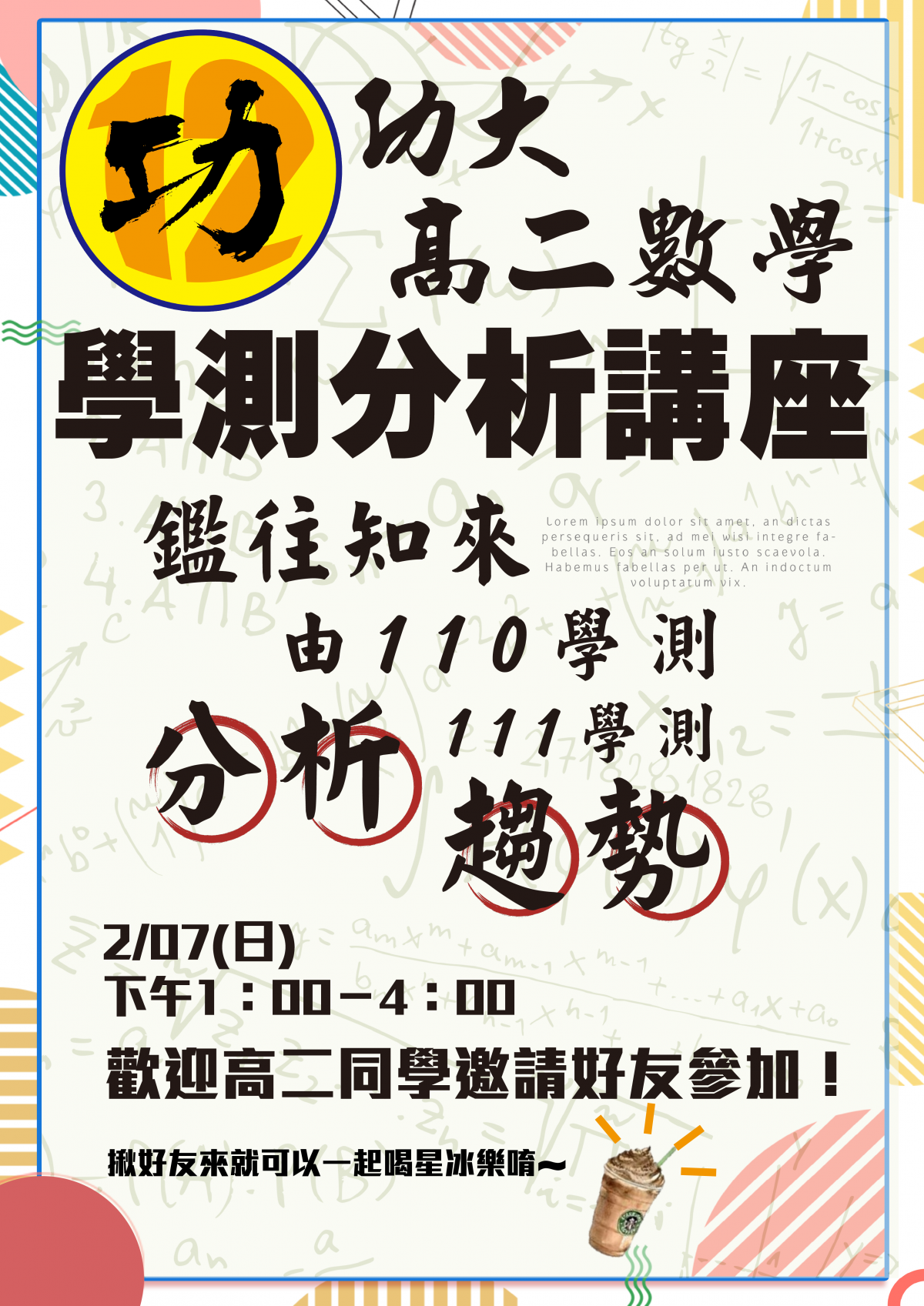 108課綱高二學測數學分析講座即將舉辦